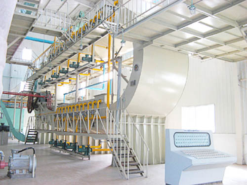 原理:浸出法制油,利用溶劑油把油料中的油脂浸提出來,油脂溶解到溶劑油中,稱之為混合油,然后通過蒸發設備把溶劑油蒸發,冷凝回收再利用,剩下的油脂就是毛油,被浸過的粕則利用刮板輸送機送到脫溶機烘干后輸送到粕庫。